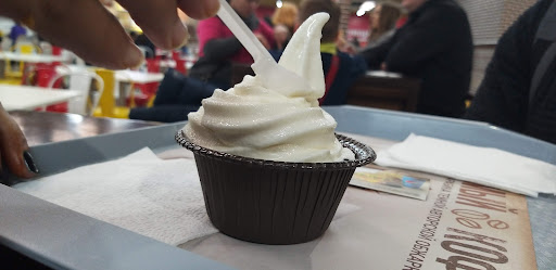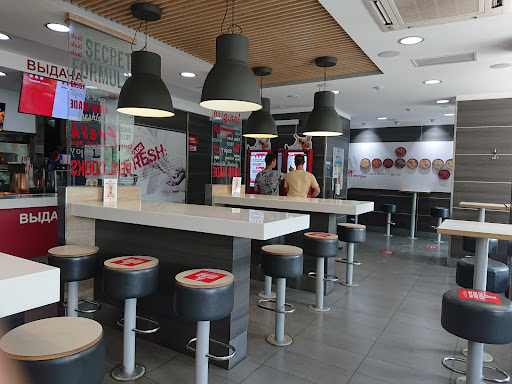 часто захожу именно сюда, а не в тот, что на Победе). качество еды, как ни странно, улучшается. стрипсы становятся более хрустащими и прожаренными, а ассортимент напитков в особые времена года расширяется. картошка тоже очень хороша, хотя кому-то наоборот больше нравится мягкая и широкая. конечно, тут и без минусов не обойтись: могут задержаться с заказом на минут десять, забыть положить салфетку или протереть свободный столик. но это к счастью – редкость :). если персонал в чём-то и напортачил, то признают свою ошибку и не спорят с клиентами, даже могут в качестве извинения угостить дополнительным блюдом или подарить карту со скидкой при будущих покупках. кассиры очень вежливые и приятные, учитывая их график работы, я вообще не понимаю, как можно и пол часа находится в спокойном...