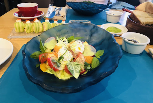 Лучшие завтраки в мире! Веранда самая уютная на Рублёвке! Все супер! Внутри только мне не нравится дизайн, если сидишь с видом на внутреннюю часть- в глубине мутный огромный аквариум без подсветки и голая огромная стена. Вроде потллок интересный и перкгруженный, но ты не смотришь же вверх на потолок, а видишь однообразные волнообразные стены и что-то мутное с крабом. Насколько крутая и атмосферная зона у окон-стен, настолько что-то странное внутри... думаю, что дизайнеры делали акцент...