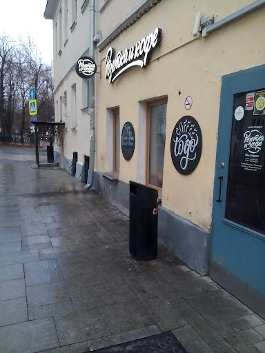 Приятное открытие! Малюсенькая кофейня в центре, близ Маросейки. Наткнулся случайно, хотя и слышал о ней в разное время от разных людей. Капучино отличный, делают его на низколактозном молоке! Был приятно удивлён замечательным мягким вкусом. К сожалению, очень махонькое помещение, три-четыре столика, впритык друг к другу. Ну и конечно люди с ноутбуками, давно выпившие кофе и часами просиживающие за клавиатурой. Это меня, честно говоря, малость подбешивает. Из-за них невозможно просто присесть и просто выпить кофе. Буквально на 15-20 минут. Приходится пить на ходу, а это я очень не люблю... Это один из минусов. Другой заключается в том, что кофе подают здесь только в бумажных стаканчиках. И только одного объёма! Цена, кстати, за такое качество вполне умеренная - 230 рублей. Что касается еды, то обратил внимание на кучку эклеров и что-то ещё. Словом, по этой части все скромно. Но отличный кофе все недостатки как-то сводит на нет. Всё-таки качество кофе - это главное! Да, кстати, на входе в кофейню вас встречают ящики с яблоками(!!?) Бери, не хочу... Очень неожиданно и...