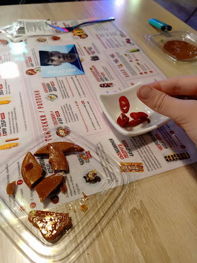 В целом всё очень понравилось, 5 из 5! Однозначно стоит посетить это место. Цены не самые низкие (среди подобных заведений), но они на 100% оправданы, т.к. еда и сервис просто супер. Ощущения после вечера в Chick O'Rico такие же, как после вечера в весёлой компании друзей. Плюсы: Еда подаётся и выглядит так, как она выгядит в инстраграме Chick O'Rico. Если в корндоге в инстаграме есть тянущийся сыр и хрустящая корочка - по факту при подаче так и будет. Чисто визуально все блюда - бомба! Еда очень вкусная, ко многим блюдам можно выбрать степень остроты или убрать какие-либо ингредиенты. Меню не завалено "лишними" блюдами, при этом блюд достаточно, чтобы выбрать себе еду на любой вкус. Официанты не пристают, тихонько убирают грязную посуду и всё. Персонал вежливый, на все вопросы отвечают чётко и понятно, т.е. сразу чувствуешь, что к тебе как к желанному гостю относятся, а не норовят вытрясти денег. Есть игры из сериала "Игра в кальмара", можно повырезать фигурку из карамели, поиграть в "Чётное / нечётное". Участие бесплатное, в качестве призов прикольные карточки с персонажами из сериала.