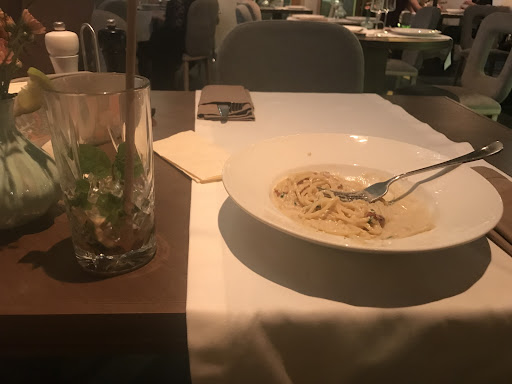 Read moreВкусная пицца, неплохая паста, отличный салат из камчатских крабов. В туалете возле раковины нет бумаги для вытирания рук. Девушка официант на вопросы о пароле к вайфаю реагирует с высокой экспрессией, что можно принять за грубость. Возможно сказывается усталость в конце рабочего дня. Впечатления от посещения входят в диссонанс с...
