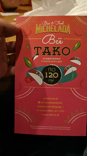 Read moreVery cosy and comfortable mexican restaurant with great tacos. We come here just for tacos and soup with tortillas. It's worth it. There is a special deal each Tuesday, all tacos for 120rub, BUT it turns out that it's not every Tuesday and the flyers are on the table anyways. We felt tricked and fooled and ended up paying twice more than...