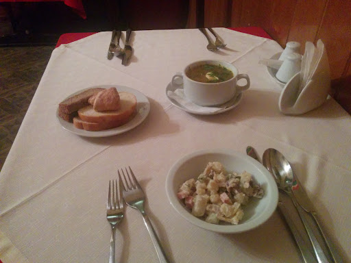 -1 В это ресторан рекомендую приходить со соей ложкой, вилкой. Да и со своей едой. Бизнес-ланч принесли хоть и быстро, но были проблемы с ложками и вилками, их пришлось ждать. Из всего бизнес-ланча понравился только овощной салат и компот из сухофруктов. Заказали тарталетки с малиной, которые согласно меню, должны быть с воздушным легким сливочным кремом и свежей малиной, оказались замороженными. За набор из чашечки кофе и тарталетки отдали 400 рублей, но смогли выпить только кофе. Или заходить в этот ресторан по большой нужде, когда округе больше ничего нет, или терпеть, или научится...