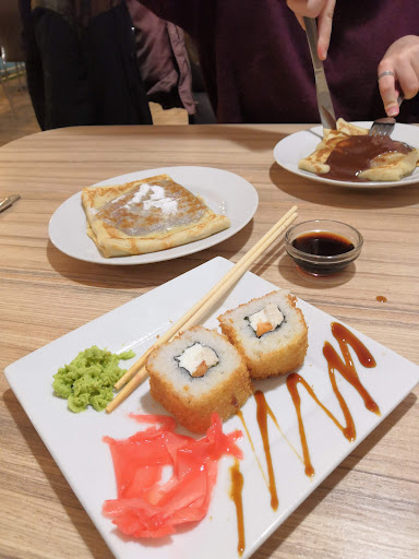 Кафе изумительное. Брали: Латте, чай масала, роллы запечённые. Принесли заказ быстро, напитки до 5 минут, роллы минут 10-15☝️ молодцы ребята👍 Обстановка уютная. Единственное второй этаж, лестницы, то есть на коляске с улице не заедешь. Только если на 1 этаже к чему-нибудь прицепить, нужно додумать. Есть детский уголок. Официанты вежливые, приятные и красивые девочки. ВАЖНО! Хочется только предложить, чтобы убрали номера столиков с ламп над столиками, очень колхозно смотрится и удешевляет...