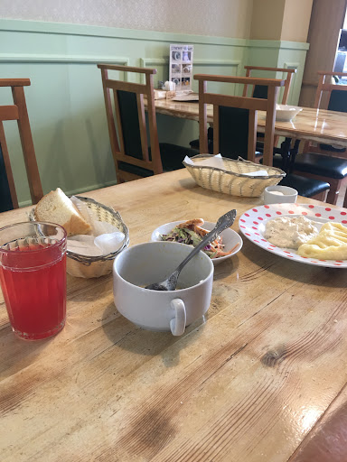 Read moreНеоднозначное мнение сложилось. Нормальное кафе, не могу его ни плохим назвать, ни классным. Пельмени хорошие, но очень вкусными их не назову, мне не хватило яркости вкуса, выразительности. Попробовала 7 видов пельменей (7 верхних позиций в меню), драники, щучьи котлеты и чай. Вот чай обалденнный, очень вкусный. Даже не один чай, а все три вида чая (апельсиновый, с шиповником, с имбирём и лимоном). А еда не впечатлила. Интерьер выражен в стиле СССР, если кто соскучился по нему, то пожалуйста сюда) Но на мой взгляд, если ты позиционируешь себя в каком-либо стиле, то в этом стиле должно быть всё, а не только плакаты, старые трюмо, хлебницы и прочие атрибуты интерьера. Ну к примеру я ещё официантов нарядила тоже в одежду, как в то время одевались. Обращение к посетителям например товарищ. Ну и остальное в том же духе)))) это моё мнение) Официанткп кстати нам не понравилась, сложилось впечатление, что мы к ней домой без приглашения пришли. Делала замечания, попросила детей обувь снять, чтоб мебель не запачкали (!) , хотя все сидели спокойно, смирно, голодные ждали пельмени) Нас было 7 взрослых, 4 детей постарше и 2 совсем малышей, которые все время спали на руках родителей. Официантка сделала нам выговор, что надо в таких случаях заранее бронировать столики, а то могло бы нам и не хватить места. Свободных столиков при том было полно свободных) мы просто после крестин в соседней часовне внезапно решили попробовать их пельмени. Ну в общем, место прям плохим назвать не могу, но и идти туда ещё раз тоже не хочу, не зацепило. Кстати, чек вышел на 3 000руб., что в принципе не дорого (7 порций пельменей, 3 порции драников, 3 порции щучьих котлет, 3 порции сырников, 3 чайника чая, хлеб,...