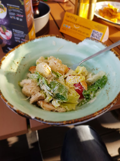 Здравствуйте. Ребят сразу да, ваш интрьей хороший. Но, есть одно - но. Ваши потолки. Думаете приятно смотреть, наверх на эти ужасные железобетонне потолки с трубами над башкой? Вы знаете что они сыпаться могут? Если что на заметку, как инженер-строитель вам говорю, швы между плитами промазаны (залиты) бетоном. Со временем они сушаться и крошаться, что требует косметического ремонта помещения. Не дай бог в тарелку ко мне кусок цемента свалится. Иным образом, потолки да...., блин закройте их уже. Это не красиво вообще. Везде фальшивая зелень и железобетонне потолки. Вы как это представляете? Какой дизайнер вам это придумал? Дурачок он. Нашёл наверное в интернете как делают кафешки и все да? "Надо как всех ". Дабы не выделяться. На оборот, нужно! Нужно выделяться. Сделайте ремонт. Уберите ужасную графити со стены где "женщина что то жрет". Ужасно! Отвратительно. Есть желания нет. Бургер вообще не бургер. Кусок сухого хлеба. Администраторы, почему так много стоят у входа с официаниами. Почему не работают. Люди кнопки жмут, ломают. А вы тусите у входа улыбаетесь. Почему официанты, каждый раз разные подходят к нам? Один официант на один два, три стола. Все. Все разные подходят. Закрепите изк столам и пусть обслуживают, а не так что один пришёл, потом другой пришёл. Каждый раз приходится новым кто подходит что-то снова объяснять. Как то это не красиво наверное, да? Не задумываетесь. Толпу в шею гоните у входа. Люди кнопки жмут. В иных заведениях, когда официанты заняты, даже админы по залу помогают. Ходят чеки, заказы принимают. Охраник вообще, не знаю что там забыл. Как дерево стоит касалапое. У вас люди просто так стоят, не понимаете чтоль. Задействуйте весь персонал. Мой вам совет. До...
