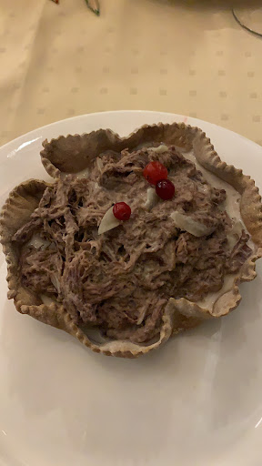 Read moreНаходится в самом центре, на пешеходной улице. Искали национальную кухню, выбрали это место. Внутри уютненько, в традиционном стиле, предложили познакомиться с историей чувашей посредством илюстрированных книг. Меню не огромное, что глаза разбегаются, но выбрать есть из чего. Заказали "Салат по-чувашски" - очень понравился - капуста хрустящая, копчёности своего производства. "Суп от головной боли и плохого настроения" - интересный, вкусный - рыба, овощи и перчёный, порция 500гр. - еле съели. На второе взяли свиной стейк с картофельными дольками - мясо вкусное, картофель тоже, но блюдо как везде, не удивило. А теперь о грустном. Также на второе заказали рыбу в яйуе со шпинатом, но уже не влезало, и пока её не принесли - попросили собрать на вынос. В дороге открыли, и я расстроилась, так как люблю шпинат, вместо него была стручковая фасоль. В меню было описано, что не смотря на необычное сочетание, это блюдо весьма распространено в глубинках Чувашии. В момент изучения меню у меня закралось подозрение, откуда в Чувашии шпинат, в России он не пользуется популярностью, насколько я знаю. Но все-таки решила заказать, так как в наше время достать продукт уже не проблема, оказалось напрасно. В общем я расстроилась, что меня обманули. Если закончился шпинат нужно было предупредить клиента, или возможно повар не знает как он выглядит, и считает, что фасоль и шпинат одно и то же. Рыба была вкусной, "шпинат" не...