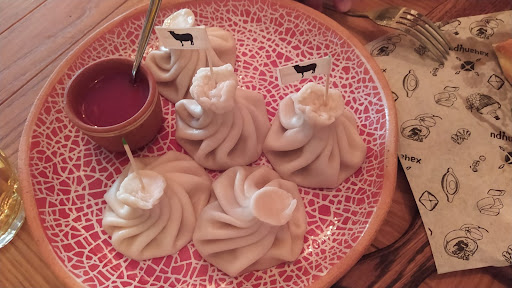 Read moreСразу скажу, что данный отзыв не имеет цели "опустить" ресторан, это больше как информация для повышения качества. В целом заведение хорошее, имеет как плюсы так и минусы. Интерьер приятный, меню обширное, обслуживание быстрое. В качестве комплимента предлагают рог домашнего вина. Теперь переходим к главному, к еде и вину. Домашнее полусладкое вино изготовлено из винограда Изабелла, это гибридный виноград, который при брожении выделяет больше метилового спирта, по этому изготовление вина из Изабеллы запрещено в некоторых странах европы. В Грузии его тоже не жалуют... Хинкали: с сыром очень сытные, начинки много, сыр сулугуни соленый и вкусный; с бараниной начинки маловато, сока тоже, мне не хватило зелени и специй; с говядиной фарша тоже очень мало,показались пресными, ни соли ни пряностей, хотя острый перец в фарше был; тесто тонкое "шёлковое", но пресное ужасно... Хачапури по-аджарски неплохое, на твердую 4 по вкусу, тесто немного сладковатое с хрустящей корочкой, сыр в меру соленый. Но восторга хачапури не вызвало. Рулетики из баклажана, оказались самым спорным блюдом, начинка странная, на мой вкус не классическая ореховая. Так и не понял что там в составе. Сложилось впечатление, что технологические карты составлены не по классическим рецептам, а с уклоном на...