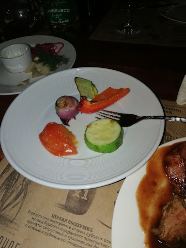 Read moreДавно хотел попробовать стейк с кровью. А из предложенных ресторанов этот был на первом месте. Заслуженно. В начале о мясе - стейк сочный, не сильно мягкий, но и не жесткий. И очень вкусный. Соуса правда многовато. Брал Рарку (слабую прожарку). Если делать делать вывод по поводу стейка среди всех ресторанов, в которых я бывал, то тут соотношение цены к качеству очень достойное. На гарнир беру овощи гриль. К самому заведению вообще нет претензий - все чисто, в дизайне не разбираюсь но вреде тематику американщины соблюдают. По поводу запаха курения - не встречал, не видел, не учуял. Может и было раньше, но сейчас там что-то напоминающее...
