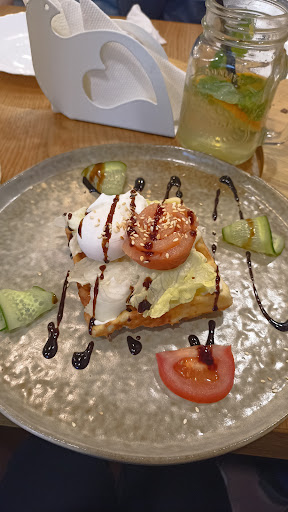 Приехали на завтрак в 9.00 в вс, очевидно, так рано гостей не ждали. Уборка была в самом разгаре. Во время нашего завтрака девушка, которая принимала заказ, намывала соседние столы в этом же зале, протирала подоконники, прибиралась в детской зоне и фотографировала все с разных ракурсов видимо для отчета. Сказать, что в такой обстановке завтракать не очень, не сказать ничего. Заказ ожидали больше заявленного времени, кофе вообще принесли только через 40 минут, к тому времени, блинчики заказанные к кофе, конечно же остыли. В туалете мило предоставлены губки для обуви, ролик для одежды, только воспользоваться не получилось - на ролике был последний грязный лист. Заметно, что руководство продумывает все до мелочей, но сотрудники, к сожалению, не поддерживают такой подход. Даже стаканчики для кофе поделены по цветам, но и их перепутали. Мне принесли бирюзовый, а...