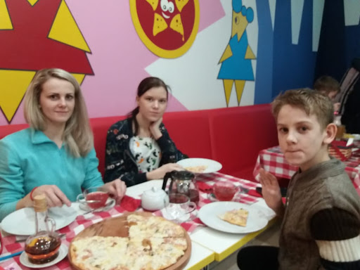 К сожалению, не знаю как тут пицца, но праздновали тут юбилей бабушки (зачем она выбрала эту пиццерию?) и блюда были не вкусные. Салат из колбасы и сыра с майонезом и редко попадающимся огурцом , другие салаты тоже не ахти. Закуски тоже ни о чем, как и горячее. Возможно, нужно было брать блюда по направлению, типа пиццы, но тут уж не я выбирала. В любом случае, если заведение взялось готовить и обслуживать банкет, то должно быть по меньшей мере неплохо, но не ужасно,...