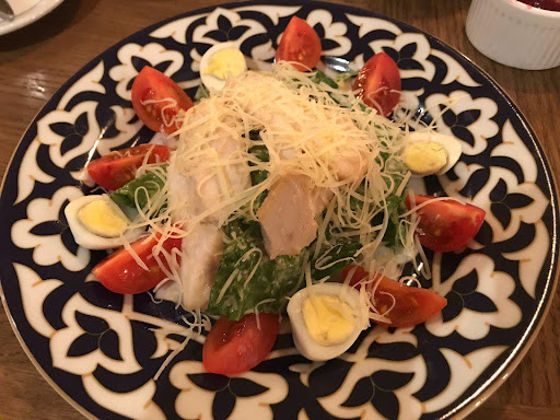 Read moreБыли здесь компанией из 8 человек, у нас была встреча выпускников, столик брали на первом этаже. Интерьер своеобразный, очень интересный, хорошо обыграна историческая кирпичная кладка. Обслуживание самое обычное, заказанных блюд ждали оооочень долго. Вкусовые качества блюд устроили, вкусно, но порции малюсенькие. Я заказывала шашлык из куриного филе, по меню он должен был подаваться с салатом из розового маринованного лука, помидоров и огурцов, приправленных масляно-уксусным соусом на лаваше, по факту принесли на доске малюююсенький шашлычок, рядом три микро-дольки помидорки и такие же микро-дольки огурца, рядом розовый сухой лук, нарезанный тонкими колечками, никакой заправки, лаваша я совсем не обнаружила, скорее всего та салфетка, на которой лежал шашлык и была обещанным лавашом. Вообщем, еда не оправдала ожидания, если сравнивать такое же блюдо другим заведением, например с шашлычной "на труда", то конечно же у конкурентов шашлык в разы вкуснее и больше, порцией по крайней мере можно вполне наесться, в "плове" нет. Всё рассчитано на то, чтобы заказывали ещё, но посколько время было позднее и с учётом того, что первый раз готовили блюдо очень долго, то по второму разу заказывать уже не решились. Ещё один момент, который не понравился - принесли общий счёт... неужели нет программы, где пронумерованны все гости? А так в общем всё чисто и уютно, нет посторонних запахов, чистый туалет, где есть даже крем для рук и средства гигиены, приветливый персонал и гардеробшица. Второй раз в это заведение скорее...