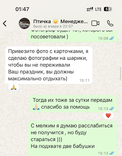12.07.2025 я заказала банкет в ресторане «Птичка» по адресу г.Челябинск ул. Труда 67. По кухне и интерьеру никаких вопросов. Очень вкусные блюда (по словам гостей), атмосферно и уютно в самом зале. Далее будет подробный отзыв об обслуживании. За 3-4 месяца до мероприятия между мной и менеджером Анастасией были заключены определенные договоренности в формате переписки в мессенджере. Где одним из аспектов было оформление. Она лично предложила оформить рассадку столов, и помочь мне наклеить фото на шарики. Рассадку я так же выслала ей заранее. Однако, когда пришла на свой юбилей, то была удивлена, фото лежали вместе с клейкой лентой на столе, а визитки с именами расставлены совершенно не так, как я скидывала. Так например мои родители в разводе оказались сидящими рядом, а жена отца вообще в другом месте. Я подошла к Анастасии, на что получила ответ, что никаких договоренностей на счет фото и шаров не было, а визитки она расставила так, потому что фото с рассадкой у нее не открылось. Прикладываю скрин переписки, где она лично предлагает помощь с фото!!! Хотя дурой выставила меня. В итоге этим занимались мои гости! Помогали мне! Далее я решаю проверить выполнение остальных договоренностей, так как доверия больше не было. И действительно. На детском столе стояла только фруктовая нарезка, хотя еще договаривались о предзаказе на основные позиции в меню. Официант ответил, что их вынесут позже. А вот напиток якобы мной не заказан. Тут я тоже столкнулась с обманом, ведь напиток был оговорен точно так же в общении с менеджером! В ресторанах должны понимать, что дети тоже люди и хотят пить и есть сразу! Далее мое настроение было сильно испорчено. И я стала замечать и другие недочеты. Например, к первому тосту, у гостей не было напитков! Хотя точно так же я писала, что дамам должно быть было предложено меню для выбора напитков! И пока я лично не подошла и не попросила выдать, никто не пошевелился. И так, первый тост все провели в изучении меню. Далее, я была вынуждена покидать зал периодически, и поэтому села есть чуть позже. Каково было мое удивление, когда мой нетронутый салат унесли! Тут я уже совсем расстроилась и рассказала мужу. Он ушел выяснять. После пришла официантка и предложила снова сделать для меня салат, я попросила сделать с мясом. Принесли с рыбой и замороженный! Позже я выяснила, что и у моей мамы забрали блюда, к которым она даже не прикоснулась! Таким образом именинница и ее мама были голодные. Двое гостей не пришли. Их салаты также унесли, и позже я не обнаружила их в контейнерах! Позже я заметила, что тарелки в принципе перестали менять. И все бы ничего. Но за весь вечер Анастасия ни разу ко мне не подошла и не спросила все ли хорошо, ни разу не принесли мне лично извинений. И позже после банкета так же от нее не поступало никаких сообщений. А очень жаль! Я доверилась организации. Это был очень важный день для меня. Я очень расстроена. Больше всего поразила наглость. За место того, чтобы признать ошибки и исправить, менеджер отпиралась и выставляла меня дурой. Это повлияло на мое настроение на весь вечер! Не приятно и обидно. Если вы решите довериться организации и обслуживанию в данном заведении, то лучше приезжайте заранее и все проверяйте. Чтобы не оказаться у разбитого корыта в свой...
