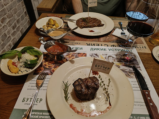 Вчера, вместе с детьми и внучкой, отмечали день рождения жены. Спасибо огромное работникам ресторана за теплый прием и и создание праздничной атмосферы! Понравилось все: и домашняя атмосфера, и разнообразное меню, и вежливость и культура поведения персонала, и качество приготовления блюд. Все было очень вкусно. Вкусы всех членов семьи были удовлетворены полностью. Мы заказали пиццу "4 сыра",три вида стейков: "Пиканья Бутчер стейк,", "Филе стейк" и "Стейк, которого ещё не было", жареного палтуса, салаты и овощи на гриле. Все блюда приготовлены и поданы к столу, что называется, "с душой". Мясо нежное, сочное, средний прожарки просто таяло во рту. А приготовленный нашей официанткой соус лишний раз подчеркивал вкус мраморной говядины. И все это разнообразие блюд было дополнено бутылочкой замечательного "Киндзмараули". Закончили мы нашу "трапезу" десертами "Кутузов" (гораздо вкуснее и нежнее "Наполеона") и "Тропикано". Было очень приятно, когда несколько членов команды "Бутчера" подошли к нашему столику и поздравили мою жену с днём рождения, поставив перед ней огромнейший кусок десерта "Кутузов" с заженной маленькой именинный свечкой. Спасибо всем, кто старался создать нам праздничную атмосферу и сделать этот вечер таким приятным и уютным! Праздник удался! Дорогие друзья, работники "Бутчера" на "Прфсоюзной", вы - большие молодцы! Ещё раз,...