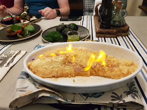Read moreБыли на этой неделе в этом ресторане. Цены на блюда завышены, качество не соответствует стоимости блюд. Попробовали грибной суп, был невкусный, морепродукты практически все безвкусные. Нас было 8 человек , понравилась только свинина , чай, лимон и руккола в салате. Красная рыба была пересоленная. Атмосфера для людей старше 40 лет больше подходит. Не хочу обидеть 40 летних. Средний возраст нашей компании 26-27. Нашей подруге после посещения данного заведения стало плохо. Считаем, что потратили деньги на ветер. Могу похвалить только официанта девушку, сама по себе приятная девушка, какого-то суперпрофессионализма и униформы у нее не было. На третьем этаже было холодно, зачем его держали открытым , мы не поняли . Мы замерзли, сидели в куртках и дополнительно попросили плед -принесли их , уже хорошо. Выши на улицу после того как посидели и на нижней палубе расположены на улице столики. Все столики я не рассматривала, но один из них был покрыт ржавчиной и лежала сверху докуренная сигарета. Видимо владельцы данного заведения забили на этот ресторан. И рестораном это не назовешь. Из плюсов есть парковка и красивый вид на ресторан, из него с третьего этажа видом насладиться сложно, потому что вместо окон , стекол и тп -пленка мутная....