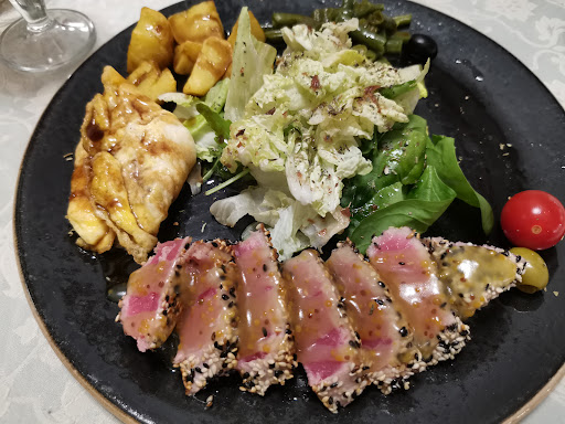 Ужин на двоих. Достаточно сытно, даже очень, но ресторан это не только, где еда доставляет сытость, но и наслаждение. Поэтому подробно по блюдам: Нисуаз - тунец хороший, омлет тоже, но слишком много бальзамика, который заглушает вкус продуктов; Том-ям - не впечатлил, много остроты, для тех кто любит поострее норм, но лучше, если степень остроты можно было регулировать самостоятельно при наличии такового при подаче, и хотелось бы менее густую консистенции, вкупе с густо ой и остротой тяжёлое блюдо; Борщ - порадовал, рекомендую, вкусный, наваристый, не жирный, т.к. с говядиной, подача чудесная, сало к борщу изумительное и ещё бутер с соусом тоже хорош; морепродукты в сливках не рекомендую, свою цену не оправдали, сытно, но не восторг, от ресторанного блюда ожидаешь большего, подача также смутила торчащими креветочными не съедобными головами. На десерт фисташковый рулет - хороший, выбирала из менее сладких. По обслуживанию - среднее, официант несколько суетлив был, спрашивал как блюдо, но ответ его не особо интересовал, быстро убегал. Обстановка приятная, в уборной есть разные полезные мелочи: губки для обуви, очиститель для одежды, Ватные диски и палочки, зубочистки, очень находчиво со стороны ресторана и удобно для посетителей. Минус, что никто не встретил в холе и не проводил до столика, определяться пришлось самим. В целом ресторан на 4. Рекомендую для посещения, в будние дни хорошо, тихо,...