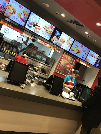 Стандартный ресторанчик популярной сети. Очень мало места, невзирая на расположение залов на двух этажах, - на каждом уровне всего несколько столиков. К сожалению, столики грязные, на полу и стульях виднеются следы неоднократного расплескивания напитков, поэтому перед тем, как занять место, рекомендую внимательно проверить поверхности, дабы не испортить одежду. Уборщицы предпочитают общаться со знакомыми или коллегами, перегораживая проход (см. фотоснимки), не обращая внимание ни на посетителей, ни на загрязнения. В противовес чистоте, обслуживание быстрое, работает сразу несколько касс. Загруженность...