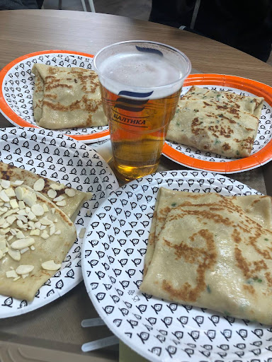 Место чистое, персонал вежливый. Претензия у меня только к еде. Заказывал суп лапшу и блин со сметаной. Лапша по моей оценки, где-то на 1 из 5 баллов тянет, вкуса лапшы как такового нет, по ощущениям блюдо искусственное и не вкусное. Блины на 3 из 5 баллов оцениваю, блины уже чуть лучше делают, но тоже на любителя похоже. Сметана которая была в начинки оказалась кислой. По цене суп вышел за 60 руб., блин с начинкой за 139 руб. Блины хоть и дорогие, но не особо вкусные оказались. В итоге это место для обеда...