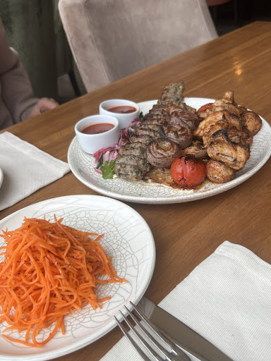 Read moreСовершенно не понравилось обслуживание.... Официанты, просто ходят мимо... И еслигты не попросишь убрать со стола, грязные тарелки, то они так и будут проходить мимо. Так же когда делал заказ, просил принести стейк ( брал стриплойн) с гарниром, после хачапури, несколько раз повторил это официанту. В итоге притащил все через минуту после хачапури.... С комментарием о том что повар не читает, коментарии официанта. Картошка остыла разумеется. Стейк он унёс, но только после моей просьбы. Наверное простоял он под лампой чтоб не остыл.... В стейке были жилы, которые не жуются.... Наверное это нормально за 1600 р. Ещё мне посоветовали к стейку, чесночный соус на основе маонеза.....))) Наверное к шаурме, было бы отлично. Так же я совершенно не понял подачу эспрессо, его мне принесли в рюмке))))) Разумеется если Вы попросите воду без уточнений, то Вам принесут самую дорогую) Бывал в этом месте ранее, очень вкусно готовят кебабы, особенно на дунганском перце! Вкусный айран, так же понравилась шаурма, но без изысков. С удовольствием поменяю рейтинг, после того как работу...