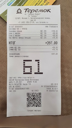 Read moreС ума сойти...заказ в Теремке (один блинчик и чай) ждала полчаса (!!!). В следствие чего опоздала на важное мероприятие. Не думала, что теремок в этом тц на окраине Москвы столь популярен. Почему нельзя нанять больше...