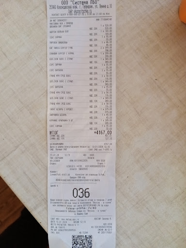 Read moreХорошее место. Были на день России в прошлом году, данное заведение оставило положительное отношение к нему, очень понравился картофель фри, сырный соус,мясо я не ем и поэтому бургер не попробовала ( тогда была акция в честь фильма "Вызов") и мне пришлось попробовать только булочку с кетчупом, булка ок, кетчуп оооооооочень острый, кола вкусная, заказ был 5 бургеров, 3 фри, 5 стаканов колы, и 3 мороженого, ждали минут 30, 2 раза приходила девушка лет 23-25 блондинка и утверждала якобы что через минут 5 или 10 минут будет готово и так блин 3-5 раз!!!!!!!, 2 этажа, санузел чистый и уютный, Диваны мягкие , и ооочень много мест, прямо оооооооооооооооооочень много, единственное что меня прямо смутило это то что летом там на вынос оооооооооооооооооочень большие очереди, иногда очень долго ждали минут 30-40. Ещё хочу добавьте то что заказы идут не по очереди, пример : отдали заказ 40 а через минут пять 13 , это очень неудобно Обязательно прийду...