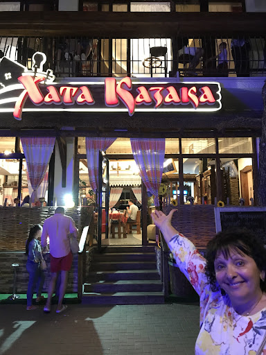 Суперское заведение! Интерьер, атмосфера, обслуживание, кухня, меню, подача фирменных блюд с огоньком, комплимент в виде рюмочки вкуснейшего самогона и закуски из черного хлеба с салом и огурчиком! Все просто замечательно и на высшем уровне! Отличное расположение - непосредственно на набережной с видом на море. На ужин с супругой ходили только в это заведение. Считаю, что цены для такого заведения у моря адекватные и доступные на любой кошелек. Нам на двоих ужин из 3-4 блюд с бутылочкой вина «Фанагория» выходил от 2200 до 3000 руб. Все зависело от выбора блюд. А их в меню просто много. Выход блюд большой. Некоторые, к примеру салаты, мы брали один на двоих. Поэтому при заказе лучше уточнить у официанта выход блюда. Обязательно попробуйте барабульку, мидии, шашлык, люля, «Загул Казака», «Загул Казачки», скумбрия на мангале и другие блюда национальной кубанской кухни. Все просто очень-очень вкусно! Отдельный респект дяде Саше. Душевный человек. Встречает и провожает гостей. Вечерами споет пару песен. Пускай не профессионально, зато от всей души и чистого сердца! Рекомендую к обязательному посещению! P.S.: да и возьмите номер телефона, чтобы заранее (минут за 15-30 до прихода) забронировать столик, т.к. свободных мест вечером...
