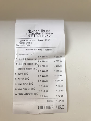 Посетили сегодня это заведение. Через сутки изменила оценку, так как началось отравление со всеми вытекающими!( Никому н рекомендую туда идти, особенно с детками!!! Итоговые оценки: Сервис и обслуживание: 3 Еда: 2 Хвалебные отзывы не соответствуют действительности. Сделали рейтинг себе на ревизорро. Помещение внутри маленькое, все сидят впритирку друг к другу. Проход между столами узкий. Сначала сели в зале-диваны соседнего стола стояли впритирку к нашему столу. Дети, сидящие там просто лезли к Сыну в лицо, чавкая ему в ухо. Мужу было очень некомфортно и тесно. Сделали заказ, но потом попросили пересесть. На улицу сначала отказались пересаживать, обосновав, что заказ уже сделан и официант закреплён. Подошла ещё раз, настойчиво попросила пересадить. Согласились сквозь зубы, сказав, что если пойдёт дождь-через дыры будет заливаться дождь и нас никуда не пересадят(то ли угроза, то ли такая форма предупреждения). Ответила, что тогда соберёмся и пойдём домой. Забегая вперёд-дождь действительно пошёл и ещё какой! В итоге там оказались пластиковые заслонки и все прекрасно закрылось от дождя. Еда. Заказывали печень, шейку, рёбра, картошку на мангале, лимонады, хачапури, тирамису. Из всего этого самым вкусным оказалась картошка и хачапури. Минимальная порция шашлыка 300гр и по фигу, что Вы это не съедите. Ребрышки очень жирные. Здоровые. См по 10-15 каждое. Свинина островата и пересушена Печень мужу понравилась, я ее не ем. Лимонады так себе, разновидность мохито, с легким оттенком других фруктов, 250р точно не стоит Тирамису так себе, есть намного вкуснее. В итоге на троих шашлыка осталось больше половины. Все оставили там, потому что разогревать и тащить с собой не хотелось. Со стола убирать не спешили, сидели до самого конца с грязными тарелками на столе. Чек на 4000 вышел.