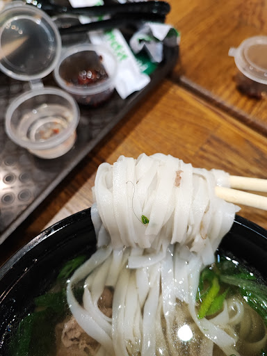 Волос с луковицей в лапше в супе фобо!! Пришлось ждать, пока подойдет хостес, потом ждать, пока подойдет повар, ждать, пока они посмотрят на это и что-то там между собой решат. В итоге этого "изучения" сказали, что переделают фобо (с лапшой, которая раскладывается из одной и той же кастрюли, где была и "волосяная" лапша - это прикол такой?). Когда мы сказали, что не будем есть в их заведении и просим возврат денег за заказ, минут 10 девушка переписывалась с кем-то (предполагаю, менеджером), предложила нам самим ему позвонить (???), а потом отказала в полном возврате, т.к. "ну вы почти весь суп съели" (на фото видно, что тарелка полная). В конце концов после нескольких минут споров, девушка нехотя сделала возврат и мы покинули данное "заведение". Не советую, если не любите "волосяные"...