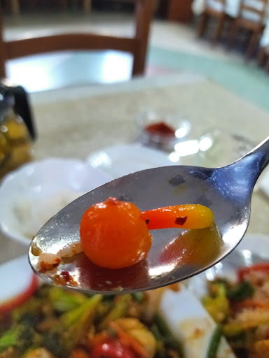Сегодня побывала в этом кафе,посмотрев отзывы была готова что в кафе не будет красиво но будет вкусно. Но было не вкусно и здание старое запах старого дома сырости, старых стен .Кто был в старых домах в деревне поймет.Декарации не опрятные,лучше были бы просто чистые стены с свежей покраской.Заказаное блюдо не совпадало с тем что было заказано. Я заказала мясо с ананасами в сладком соусе. Очень распространенное блюдо я знаю какое оно на вкус и на вид.Крупная нарезка мяса и овощей мясо в кляре и все в остром сладком соусе. Что принесли не как не соответствовало. Сырые огурцы кружочками в этом блюде были вишенкой на торте моего негодования. Когда я решила спросить какой номер нам принесли я заказала 22 он ответил все правельно я переспросила почему на стене оно выглядит по другому .Парень сотрудник сказал что картинки на стене просто для красоты а вид может быть другим.Сколько раз себе говорила не пробовать ерунду в незнакомых местах .Желание придти ещё раз у меня не возникло.От себя хочу извиниться мы были с ребенком 2 года он нарвал солфетку и расыпал рис не критично несколько ложек .В кафе было пусто мы не кому не помешали. Но и вопросы я задавала спокойно но уже не в приподнятом настроение.Есть еда которая поднимает настроение,а есть от которой портиться...