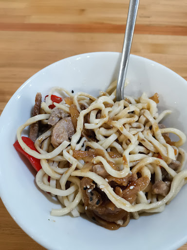 Представим ситуацию. 8 июля, обычный четверг, время около 16:00, и тут в это кафе заходит толпа голодных студентов-практикантов с берегов байкала, которые кроме тушенки уже 10 дней ничего не видели) Перед уездом, так как до поезда было еще довольно долго, мы уж очень хотели поесть, наш выбор пал на это местечко. Особо не заморачиваясь заказывали лапшу с курицей и свининой, стоимостью 180-190р, что очень приемлемо, и лимонады. Честно говоря, я думала, что с таким объемным заказом (13 порций), время ожидания будет довольно длительным, но я ошиблась, буквально через 15 минут, наши тарелки уже были у нас (похвально 👏👏👏) Лапша со свининой. В составе пшеничная лапша, свинина, лук, болгарский перец, соус, кунжут. Какой был соус, я так и не поняла, вроде терияки, а вроде и нет, спрашивать не стала, но его было откровенно мало - лапша сухая. За это звезду снимаю. Еще на кассе с самого начала на меня смотрела трубочка со сгущенкой. Доев свой вок, я не выдержала и отправилась за ней. Цена всего 70р, но это просто 10 из 10. Мягкая, сгущенки не пожалели,...