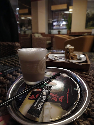 В четверг вечером впервые в жизни посетила данное заведение. Интерьер норм, официанты отзывчивые. Кофе средненький - это из плюсов. А вот кухня - это УЖАС!!! Чек сохранила. Молчу про каппучино за 275 рублей/300мл, не скажу, что невкусный, обычный кофе, но за такую цену ожидала гораздо большего. Латте - за сироп требуют доплаты 30 рублей. Вы серьезно? О.о Обычно, когда в кофейнях подают латте и спрашивают про сироп, ценник уже включает в себя стоимость сиропа. Итог за латте 200мл - 275 рублей. Пить можно, но не вау. Никакой симпатичной подачи в виде рисунков, не дали даже трубочку! Кухня - это тихий ужас! В цезаре со свежей семгой была вовсе никакая не семга, а что-то больше похожее на кету, старую, то ли маринованную в масле с луком, то ли просто задохнувшуюся. Порция микроскопическая, сыр - вообще не пармезан, а что-то непонятное и невкусное. Соуса как будто не было вообще - цена 330 рублей. Блюдо с красивым названием Планше с томатами и ветчиной - это самая обычная прямоугольная слойка 7*10 сантиметров, сверху лежит не ветчина, а какая-то дешевая химическая вареная колбаса - 3 кусочка, сверху 3 кусочка помидоров, всё это посыпано сыром и запечено в духовке. Никаких специй, соусов и т.д. Тесто тяжелое, как будто не пропекли! А после всего этого безобразия еще и отравление! Всю ночь болел живот, рвота и прочие "ништяки". До администрации не дозвонилась, но появилось огромное желание написать жалобу в Роспотребнадзор, чтобы инициировали проверку, чем и займусь в понедельник! Категорически не советую данное заведение никому, кто хочет вкусно и без последствий провести...