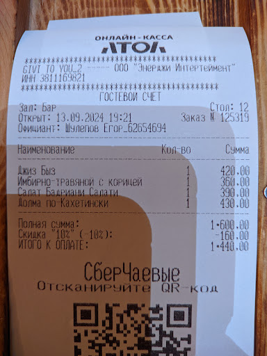 Решили впервые посетить данное место и очень разочаровались в нём. Оказывается несмотря на нашу провинцию в ресторане имеется система удалённого вызова официанта (это плюс), о которой нам никто не рассказывал (а это жирный минус). Около кнопок реклама какого-то розыгрыша и всё, по которой я махнул взглядом и более не смотрел туда. В итоге после посадки мы 20 минут ждали официанта, пока сами не поймали одного из проходивших мимо. Сильно много света, садится надо только у окна, свет от боковых перегородок и сверху бьёт очень сильно в глаза. А дальше настал треш: долма по-кахетински просто разогретое блюдо, снаружи горячее, а внутри холодное. Элементарная физика, если даже остыло бы, то было бы внутри теплое и снаружи холодное, но не наоборот. Я прихожу в ресторан, чтобы покушать свежеприготовленную пищу, а не разогретую. Вот это позор! Дальше - джыз быз - картошка очень твердая, ну очень, такое ощущение, что она тоже полежала в холодильнике, а потом её ещё раз обжарили, печень вываренная, вкуса печени даже нет, запах от печени еле уловимый. Когда я прихожу в придорожную забегаловку я от них и не ожидаю чего-то большого, а тут же ресторан, но уровня как раз забегаловки. На мои претензии официант "о, щедрость" за разогретую вчерашнюю еду дал аж 10% скидки. Мой вывод: обойду стороной сие заведение, хорошо что в городе есть другие более лучшие места с грузинской кухней. И вам не советую сюда ходить! UPD: Да, и у официанта, который приносит мне еду была грязь под ногтями, у человека который работает в общепите! Ну это уже...