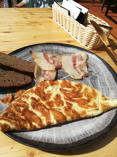 Были здесь первый раз, заведение, в целом, понравилось. Огромный плюс, который выравнивает многие огрехи -- наличие летней веранды. Район, утыканный многоэтажками, нуждается в как можно большем количестве кафе с открытым пространством, это придает какую-то человечность бетонным полям. Еще один плюс, не позволяющий сильно придираться - выдерживается соотношение цена/качество. Порции не такие большие, но и ценник за них не ломят, как во многих пафосных местах. Брали омлет, картофель, кофе - для 120 р за порцию весьма достойно. Кофе - всегда вопрос на любителя, ну и попробовать нужно несколько раз. По обслуживанию вопросов нет, все вежливые, доброжелательные. Пожелания. Судя по всему, веранда еще будет меняться, надеюсь, появится крыша или какие-то варианты зонтиков - на солнцепеке тяжеловато. С 13 этажа летят капли воды с кондиционера. Интерьер и идеология заведения -- конечно прерогатива собственников бизнеса, но у меня возник какой-то диссонанс. Подходишь - простая и красивая веранда, столики, хочется зайти. Заходишь - батарея кранов как в "разливном", жестяные баки, похожие на кеги и первая мысль - "ошибся дверью"? Поворачиваешь голову направо - опять нормальный интерьер, столики, диваны. Но, на вкус и цвет товарищей нет, конечно. По мелочи - на веранде нет соли/перца, нет популярных позиций (фри/молочные коктейли). Все сказанное никак не снижает общей положительной оценки кафе, более развернутый отзыв по кухне напишу, когда попробую более...