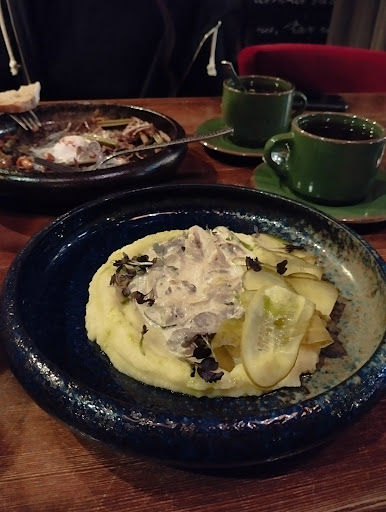 Read moreБыли в этом заведении второй раз, оба раза пришлось очень долго ждать не только вынос блюд, но и обслуживание в целом. Подают блюда паре не одновременно что раньше, что сейчас, ничего не изменилось. Жаль, что ресторан уверенно закрывает глаза на этот факт, не смотря недовольство своих гостей. Еда вкусная, приготовлена на отлично, но подача часто отличается от варианта представленного в меню. Однако, обслуживание затмевает всё хорошее впечатление от блюд, которые приходится ждать порой больше часа и речь идёт всего о трёх позициях. Ожидать приходится и не спешащих официантов, которые в упор не замечают грязные тарелки на столах и подходят по ощущениям как можно реже . Чувствуешь себя брошенным. Атмосфера в заведении приятная, однако музыка была столь громкая и навязчивая, что порой было не слышно собеседника. В завершении нашего итак неприятного вечера нам еще и пробили позицию в чек, которой не оказалось в наличии. В общем, от ужина остался лишь неприятный осадок, который я бы с радостью высказала официанту/администратору, но которая даже не удосужилась спросить в конце...