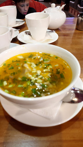 Я приехала в Иркутск в гости из Екатеринбурга. В это кафе зашли с мамой случайно (были рядом в ТЦ). Взяли с мамой 2 тарелки солянки,салат китайский с говядиной (1 порция на двоих ТК объем на одну из нас очень большой),гренки,цветная капуста в кляре (очень вкусно между прочим),2 кофе гляссе. За такой обед мы отдали 1190 руб. Еда была исключительно вкусная. Порции большие. Обслуживание быстрое,официант вежливый и внимательный (пустые тарелки сразу убирались со стола сразу). В Екатеринбурге я бы за такой обед отдала не менее 3-4 тысяч . Величина порции 100%там была бы в два раза меньше. Ну и по качеству приготовления в Екатеринбурге это был бы ресторан. Здесь же это кафе с очень хорошей кухней и демократичными ценами. Всем рекомендую. Работникам,поварам низкий поклон. Вы лучшие!!! Так держать!!!! Владельцам кафе спасибо! Держитесь в сегодняшнее время тяжело таким заведениям. В Екатеринбурге много закрылось маленьких кафешек. Спасибо большое!!! Буду рада посетить вас ещё...