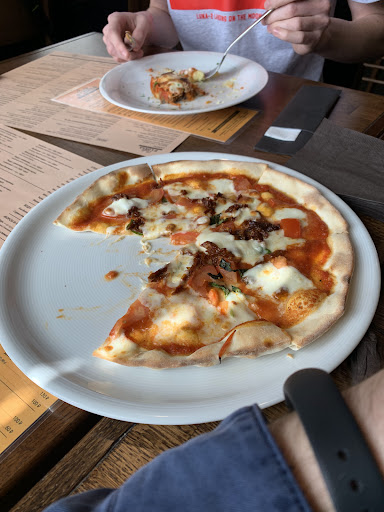 Пиццу дожарить до хрустящего дна было бы здорово. Убрать помидоры свежие, заменить на "из баночки специальной", везде сейчас уже продают их. То, что итальянцы используют. Свежие помидоры как раз и делают пиццу черезчур мягкой, потому что водянистые. Прошуто было тоже супер!!!