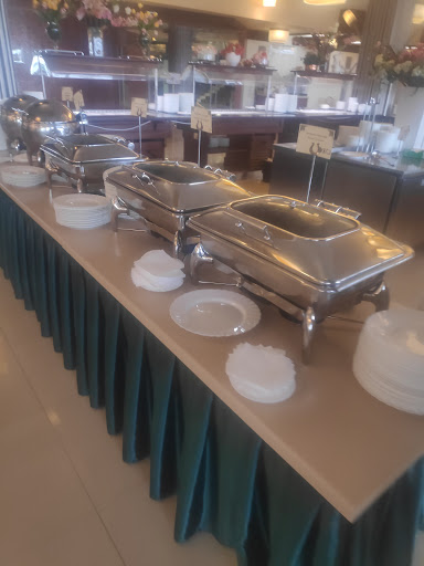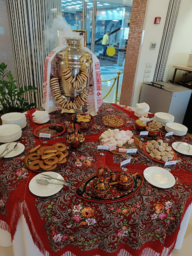 Read moreБрали обед. Выбор блюд для обеда в отеле 4 звезд очень скромный: 1 рыба, 1 мясо, 1 гарнир, пара супов, пара салатов, остальное - закуски и десерты. По вкусу: ели вчетвером, вкус все оценили на очень посредственном уровне: в гуляше один жир, салаты безвкусные и так далее. Сегодня был большой ажиотаж, большие очереди, но это было обусловлено скорее каким-то молодёжным мероприятием, в другой день думаю бывает свободнее. Плюс один ставлю: персоналу, который регулярно следил за чистотой столов и вовремя убирались. Цена: по 850 рублей за человека, очень завышена, второй раз не придём, не рекомендую к посещению, в ближайшем округе за эту стоимость есть более достойные...