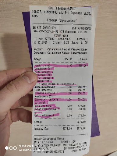 Read moreВпечатление остались наихудшие. Пришла на завтрак и испортили настроение на весь день. Официант Карина максимально недружелюбная и подходила всегда с кислым лицом, будто я ей должна. Напиток принесли после того как вынесли оба блюда из комбозавтрака и то, наварено потому, что я попросила. Позавтракав я решила оплатить счет через приложение, увидела, что вода добавлена отдельно от завтрака, хотя идет вместе с ним. Позвав ее, она начала спорить и оправдываться, что вода идет отдельно, хотя это не так, в итоге воду удалили. Оправдалась тем, что воды, которая идет в набор нет (акваминерале). Уже почти ушла, но заметила на стойках бара эту самую акваминерале. И с газом и без. Поняла, что меня просто хотели обмануть и повысить чек. Пошла сразу к администратору, на что та даже не подошла. Разговаривала в итоге с каким-то другим сотрудником, которая тоже сначала начала со мной спорить, потом просто сказала, что официант стажер. Я была в других шоколадницах, там клиентоориентированность в разы выше. Здесь помойка, а не заведение. Не рекомендую к посещению никому. Обманут, нахамят и еще деньги с...