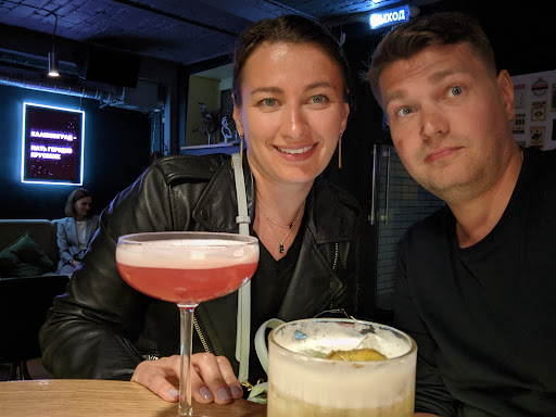 Read moreНаверное, если сравнивать с остальными местами в Калиниграде место может и тянет на хороший рейтинг, но для тех, кто привык к московским барам скорее всего не зайдёт. Нас сразу посадила девушка, сказала, что сейчас подойдёт принять заказ и пропала на 10 минут, хотя баре было не очень много людей. Сидели в ожидании, но пришлось идти самим заказывать коктейли. Бармен принял заказ, но как только подошла его знакомая, сразу переключился на нее и начал делать коктейль ей, вместо того, чтобы выполнить наш заказ, хотя мы заказали раньше, поэтому снова пришлось ждать. Также стоит отметить, что выбор коктейльной карты достаточно мал. Самое главное - коктейли не очень. Два одинаковых коктейля (Иволга) отличались по вкусу. Также не ждите какого-то движа, место для того, чтобы посидеть и поболтать. Интерьер больше похож на бар крафтового пива а-ля Энтузиаст, отчего чувствуется какая-то несостыковка. По итогу, не самый торопливый и, видимо, пофигистичный персонал и несоответствие цены качеству. Правда, коктейль этот точно не...
