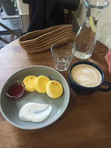 Read moreМоё первое посещение стало последним. Пришла с утра, людей практически не было. В основном приходили за кофе с собой. Началось с того, что девушка передо мной заказала капучино с собой и стояла перед стойкой, а я заказала латте и сырники и села за стол позади неё. Мне принесли её кофе... Но так как озвучили, что это капучино, я сразу сказала, что это не для меня. Принесли кофе, затем воду и приборы и чуть позже сырники. Нож был грязный, что-то на него налипло, подошла попросила заменить. Далее пришла девушка с детьми и тоже заказала сырники. И я была очень удивлена, когда увидела красивую подачу с ягодами. Спросила у персонала, мне сказали, что ягоды идут отдельно. Однако в меню этого я не видела и меня никто не спросил, когда я делала заказ. Что по еде. Кофе нормальный, я не особо в нём понимаю. Брала ещё с собой какао и овсяное печенье с шоколадом. Так вот, это были самые отвратительные сырники и печенье в моей жизни. Какао тоже посредственный, как будто вода водой, возможно такое молоко(беру в питере в вольчике какао и там просто дают горячее молоко и пакетик какао, так вот в 10 раз лучше этого). И за время пока я там была несколько людей пожаловались. Из того что помню это постоянный клиент пожаловался на качество кофе, заказанного в его прошлый визит. И другой мужчина...