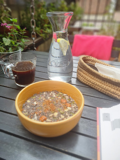 Read moreМесто замечательное-это правда. Утром, в тишине на воздухе выпить чашку кофе, скушать что-то на завтрак 🙂 это ли не прекрасно? Ребята, нужно побывать, подышать воздухом, после прогуляться до пруда, рядом, найдёте на карте. Единственное, что меня огорчило- так это утренняя каша. В меню было непонятно какая, с чем, я честно спросил-мне сказали "Овсянка, со знаками разными...." , но в результате это были " Разные знаки... с овсянкой". Я тоже, сначала удивился почему овсяная каша стоит 380р, дело в том что там ТОЛЬКО знаки. Впервые видел такой вариант каши. Ребята просто уточнили некорректно, а я так понял, что там Овсяная каша.... ну и знаки сверху. А в итоге там одни знаки.. и где-то там ложечка овсяных хлопьев. Мне не очень понравилось, в результате , покормил местных голубей, которые с большим удовольствием поклеваои зерно. Ребята, персонал заведения, этотнемменяет моей оценки заведения и общеговп4чатления, но лучше бы вам уточнять правильно клиентам. То, чего большим и является основным ингредиентом блюда- так по русски правильно. Не сказать на 3 слова больше, чем просто ответить. Приду снова, но не за...