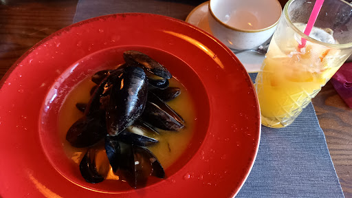 Read moreПосещение этого заведения оставило лишь неприятный осадок. Из меню заказали мясо индейки, тигровые(прошу обратить внимание) креветки в соусе и филе курицы с салатом, и напитки. В итоге довольны остались лишь напитками, ибо их испортить очень трудно. По факту получили обыкновенные креветки, которые плавали в соусе и были с хвостиком, подача блюда вообще не подразумевает цивилизованного способа их употребления. Тарелки были маленькие и неудобные, для хвостиков не дали даже отдельной посуды, не дали и воды или влажных салфеток, чтобы испачканные от соуса руки можно было хоть как-то отмыть. Накалывать креветки вилкой выглядело бы в данном случае варварством. Мясо индейки почему-то не удерживалось вилкой и скользило по тарелке при попытке его нарезать. Как оказалось минутой позднее, этому препятствовала огромная бедренная кость. Есть это было очень трудно да и, по сути, из-за кости и нечего было толком есть. В "мясе" помимо кости были еще сухожилия. Филе с салатом не имело вообще никакого вкуса, салат не был ничем приправлен. Оставили в заведении 2000р и...
