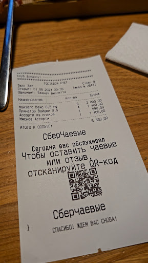 Заказали мясное ассорти, уже когда его съели, оставалось какое-то количество свиных ушей, мы обнаруживаем, что на многих кусках плесень (фото прикладываю); Администратор ничего по этому поводу не могла сказать, принесла карту лояльности на 1000 рублей и говорит это вам в качестве извинения, стоимость ассорти 1400 на секунду, но вопрос вообще не в цене, а в потенциальном отравлении; Администратор не хотела убирать позицию из чека, говорила о том, что нет терминалов, чтобы вернуть деньги, в итоге решили кое как этот вопрос, через тернии к отмене; Администратор на эту ситуацию с мясом насмехалась и вела себя, как минимум, не уважительно, язвила, хамила. Для понимания это мясная продукция очевидно просроченная или с нарушением режима хранения, а тут перед вами еще «пальцы гнут», короче говоря по всем пунктам преуспели, я не буду говорить о том, что столы шатаются, это уже ладно…