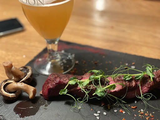 За баром нас встретил очаровательный татуированный парень, рассказал нам про их пиво, мы выбрали вишневое, пообщались про общую идею заведения (круто) и закончили музыкальными новинками и кино. Невероятная харизма, чувство юмора и его серьёзность сопровождала нас весь вечер. Было очень приятно провести с вами время, спасибо. Надеюсь, что ещё увидимся ;)
