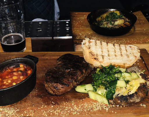 Были во множестве стейк-хаусов, как в нашем городе, так и других. И к сожалению скажу, что этот наверно единственный, который не оправдал ожидания... Столько хвалебных отзывов, оценок, а по факту только пыль в глаза. Мясо самое обычное, хоть и жареное на углях, но в прожарку не попали, специй/соли/перца никаких не было... Заказали рёбра, которые, по заявлению в меню - Томленые, в соусе. По факту - Соуса там просто толком не было, мясо отбирать приходилось силком. Будто с морозилки обычные покупные рёбра из Ашана вытащили, и пожарили. Мясо не сочное... Пиво не впечатлило от слово совсем, бутылочное, пожалуй даже иногда лучше бывает...