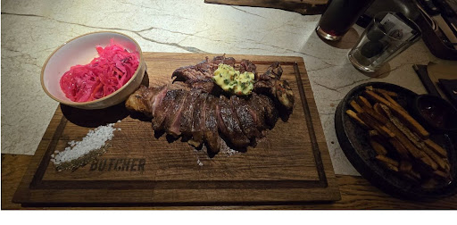 Read moreНе понимаю откуда столько восторженных отзывов. Решил отметить день рождения в данном заведении и разочарованию не было предела. Заказал тибон стейк. Подача очень хорошая и с прожаркой попали, правда вкус самого стейка почувствовать не удалось. Мне кажется подошва и то нежнее будет, абсолютно резиновый стейк. Официант уверяла меня, что это особенность стейков на кости, но его даже откусить невозможно было. Картофель фри был просто пережарен а некоторые куски и вовсе сожжены. Так же заказывали шеф бургер. Я бы убрал слово шеф из названия, чтобы не позорится. Абсолютно сухая булка, такое же резиновое мясо, я так и не понял где там сырная лава. В целом съедобно но не более того, в Казани есть места где в разы вкуснее бургеры и в разы дешевле. 1390 за этот позор кулинарии это перебор. Плюс ещё сломанная перечница из-за которой пролили часть напитков и разбили зашитный экран телефона. Если вы рассматриваете места где хорошие стейки то это место можете...