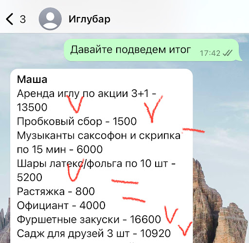 Ниже прикрепяю фото и скриншоты. Заказывала иглу № 10 с видом на Кремль. В пакет «ЮБИЛЕЙ» входит: обслуживание официанта,аренда иглу,фуршет,пробковый сбор,скрипач и саксофон,торжествен. вынос тОрта,горячее,украшение иглу шарами,растяжками и всё для фотозоны. Комментарий 1. Дверь иглу сломана:)Чтобы её открыть нужно 2 человека. И это без шуток. А так как уборная/покурить и пр. на улице, то отвлекаются абсолютно все, чтобы помочь открыть дверь. В течение мероприятия ничего даже не попытались сделать. Хотя ходили и администратор, и официант. Ком.2️⃣Я перечислила выше, что было в пакете юбилея. Однако украшение зоны и скрипач были за доп.стоимость,кот. я заплатила отдельно. А их не было🤡см.скрин. Я захожу в иглу и вижу привязанные к стульям шарики. И всё. Ни фотозоны, ни растяжки, ни шарики с грузиком, кот. были бы частью фотозоны. НИ-ЧЕ-ГО. И когда я спросила: а где? То официант сказала: ой,сейчас исправим. Она пришла только со страшными буквами «С ДР» и сказала, что больше ничего у них нет. И у нас должна была быть надпись «НВ», но она лопнула🤡 Так как гости приходили уже через 20 минут, то придумывать что-либо нет времени. Ком.3️⃣Не важно пакетом или НЕ пакетом ты заказываешь «Юбилей», обслуживание официанта 4.000₽. Это НУЛЁВОЕ ОБСЛУЖИВАНИЕ. Я в собственный день рождения обрывала трубки некой Елизавете, которая не брала ни по телефону, ни по вотс аппу, который сама же оставила. Я звонила 16 РАЗ! Не дозвонилась и ходила сама на уличную кухню в платье и 👠 по снегу через СЛОМАННУЮ ДВЕРЬ иглу № 10. Я прошу выносить горячее -ничего не приносят. Через администратора говорю: можно доносить напитки —ноль реакции. Было чёткое расписание, т.к. отдельно я заказывала фотографа. Ноль следования времени. Комментарий 4️⃣ Ни торжественного выноса торта, ни скрипача просто не было🤡 Знаете,что мне за это предложили в конце? Простить бутылку шампанского и 20 мин, на которые мы задержались после аренды, хотя мы ждали пакеты с едой. В которые, КСТАТИ, не положили закуски. Поэтому заведение мне должно сумму за неоказанные услуги, которые сказали, что не...
