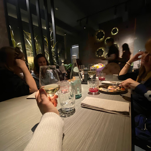 Заказывали столик заранее, думаю, что прийти просто так вечером и попасть на свободные столики вряд ли получится. Людей много,но никто никому не мешал. Очень порадовали вазы с живыми цветами повсюду, очень необычно и приятно. Гости заказывали многое, из неудачных блюд можно отметить только что стейк - резиновый, из удачных: салат из угря, овощи на гриле, филе утки, лосось. Приятная сервировка блюд. Живая музыка. Из минусов - это отсутствие кнопки вызова официанта, их постоянно надо отлавливать, это реально напрягает. Об этом пишут постоянно, но ВОЗ и НЫНЕ ТАМ. Печально, что руководство игнорирует отзывы и пожелания. Из-за этой мелочи возможна Потеря клиента. В целом посидели душевно, приятным сюрпризом был неожиданный маленький подарок от заведения именинникам. Спасибо, впечатлило! Будем советовать Вас друзьям, если конечно руководство услышит пожелания...