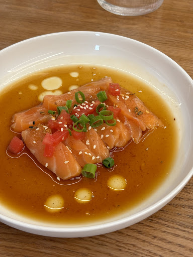 Попробовали гастрономический сет, приготовленный в рамках одного из фестивалей, и остались довольны - каждое из трех блюд сета доведено до идеала. Лосось понзу был очень нежным, в заведении подают прекрасные по качеству морепродукты.