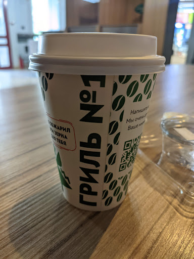Название совсем не соответствует действительности! Во первых, "гриль" подразумевает мясо, овощи приготовленные на огне. В меню же - пицца, шаурма, несколько салатов. На всех стенах баннеры со всеми возможными вариантами заказа пиццы по несколько штук. Всё-таки, может "Пицца номер один"?!? Во-вторых, "номер 1" - после увиденного меню, обслуживания, наличия одноразовых приборов самого дешёвого качества, НОМЕР ОДИН - только в списке столовых, куда ходят студенты на большой перемене. В-третьих, качество. Оно низкое! Салат "Цезарь" - из холодильника, в коробочке лежащей не один час. Шаурма - толстая лепешка, начинки мало и она совсем не вкусная. Кофе - водянистое, холодное, в нем много молока, поэтому и остыло))